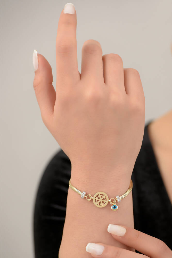 Göz Detaylı Kar Tanesi Altın Bileklik